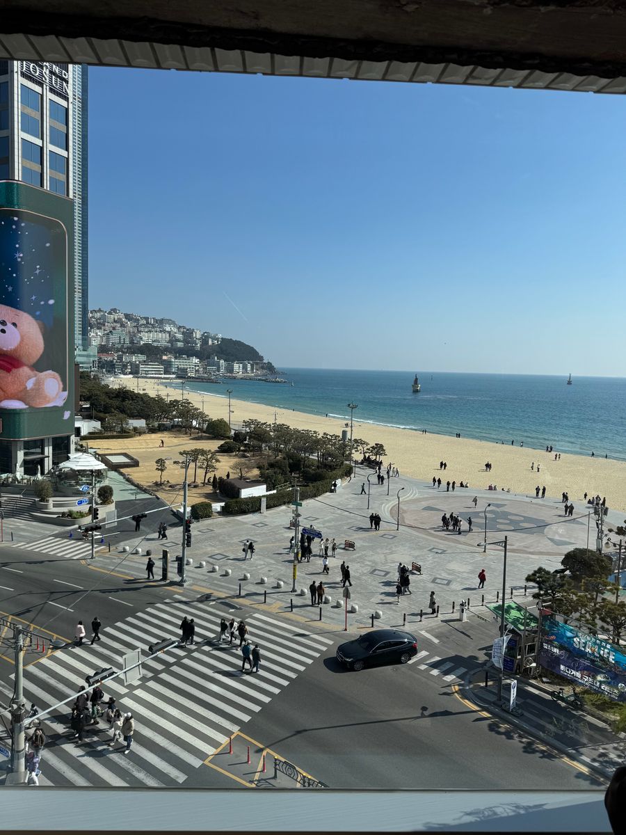 A really cool spot right by Haeundae Beach in Busan. The cafe is located on the 5th floor. It was pretty busy with both tourists and locals working on laptops. There's a large table in the middle of the cafe, which is definitely the best seat for working.