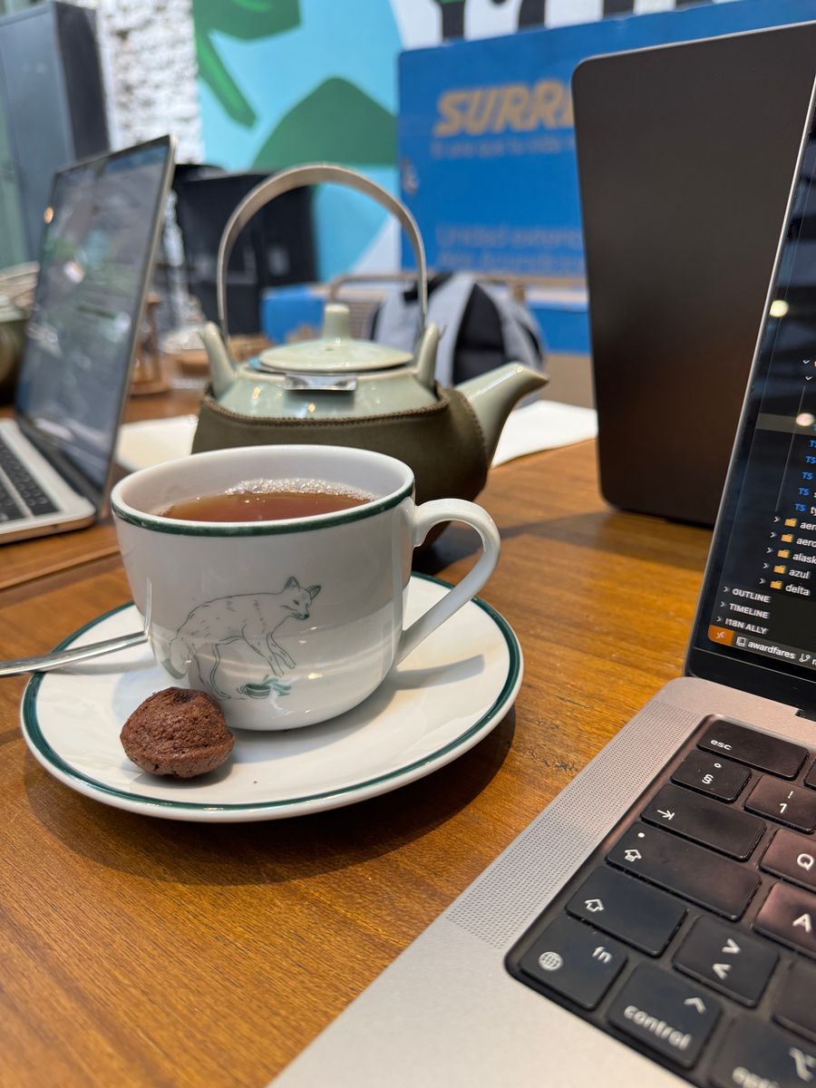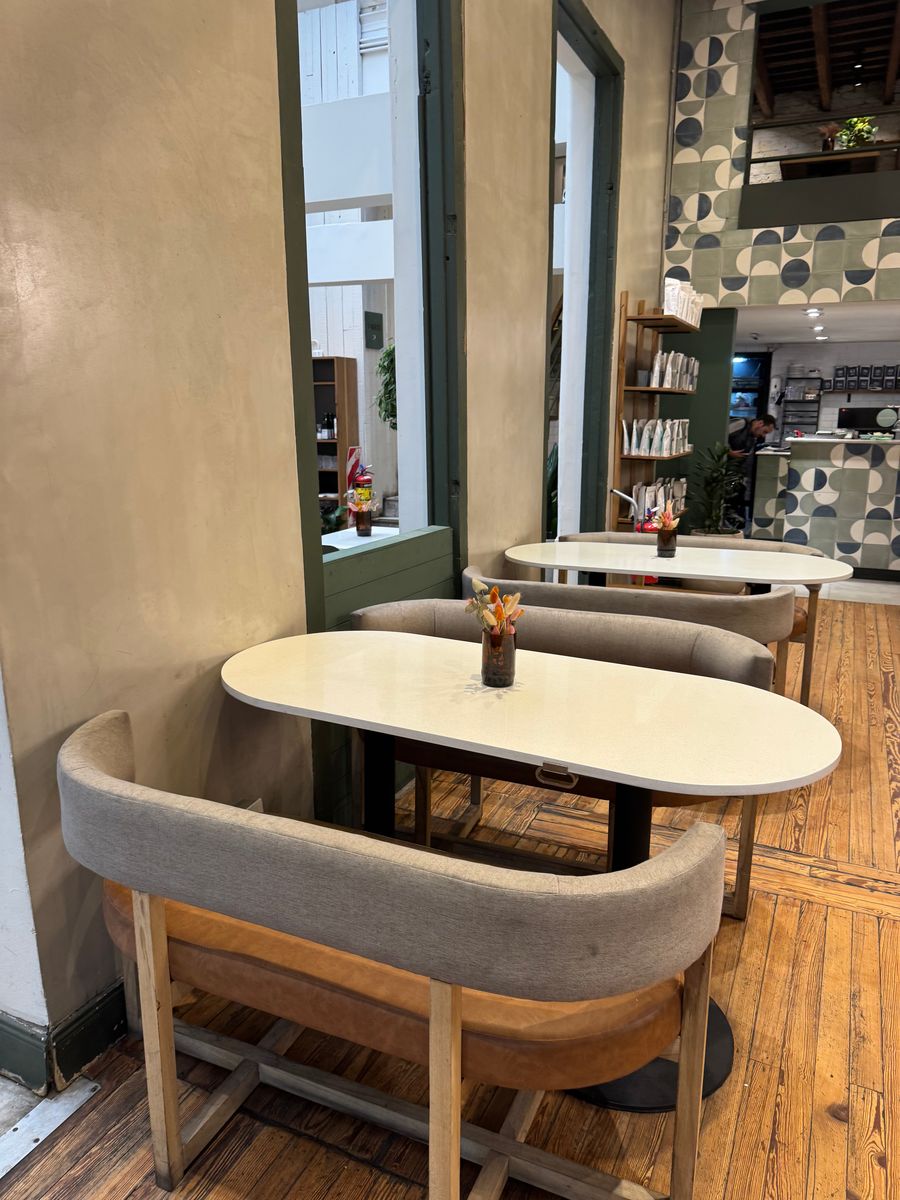 A fantastic cafe to work from. I ended up coming here several days while visiting Buenos Aires. There's a large outdoor seating area, the main indoor area, and even a small second floor area overlooking the cafe. Serves breakfast, lunch, and dinner, and has a large selection of beverages and an extensive offering of teas. Fast WiFi and some power outlets available.