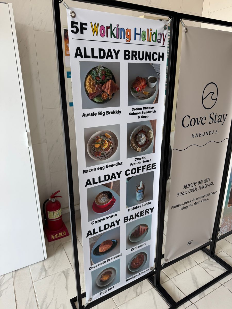 A really cool spot right by Haeundae Beach in Busan. The cafe is located on the 5th floor. It was pretty busy with both tourists and locals working on laptops. There's a large table in the middle of the cafe, which is definitely the best seat for working.
