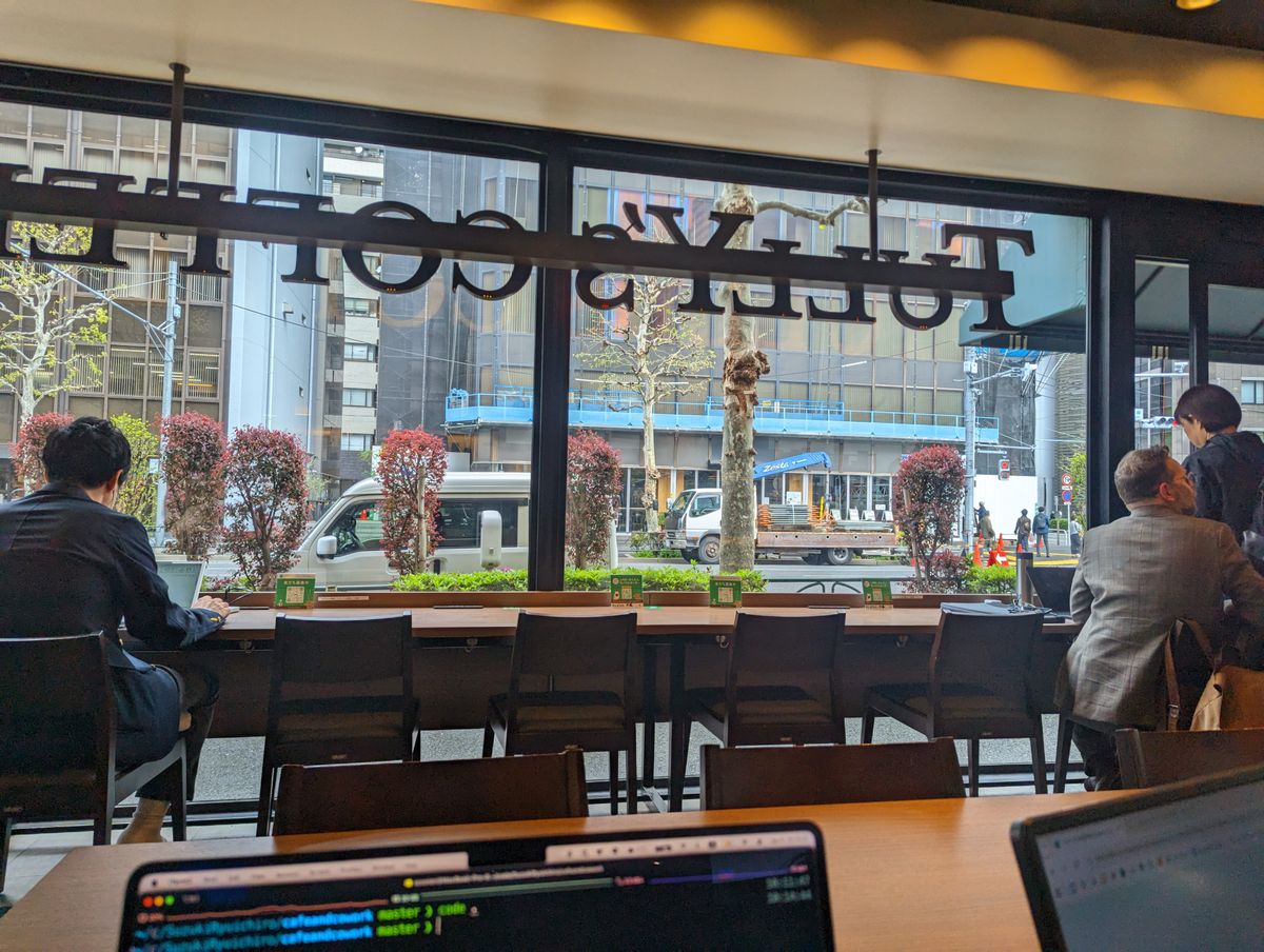 Located on the ground floor of a building on the corner. Not the best view but has a big window to take a lot of lights in. Most of the seats have plugs.